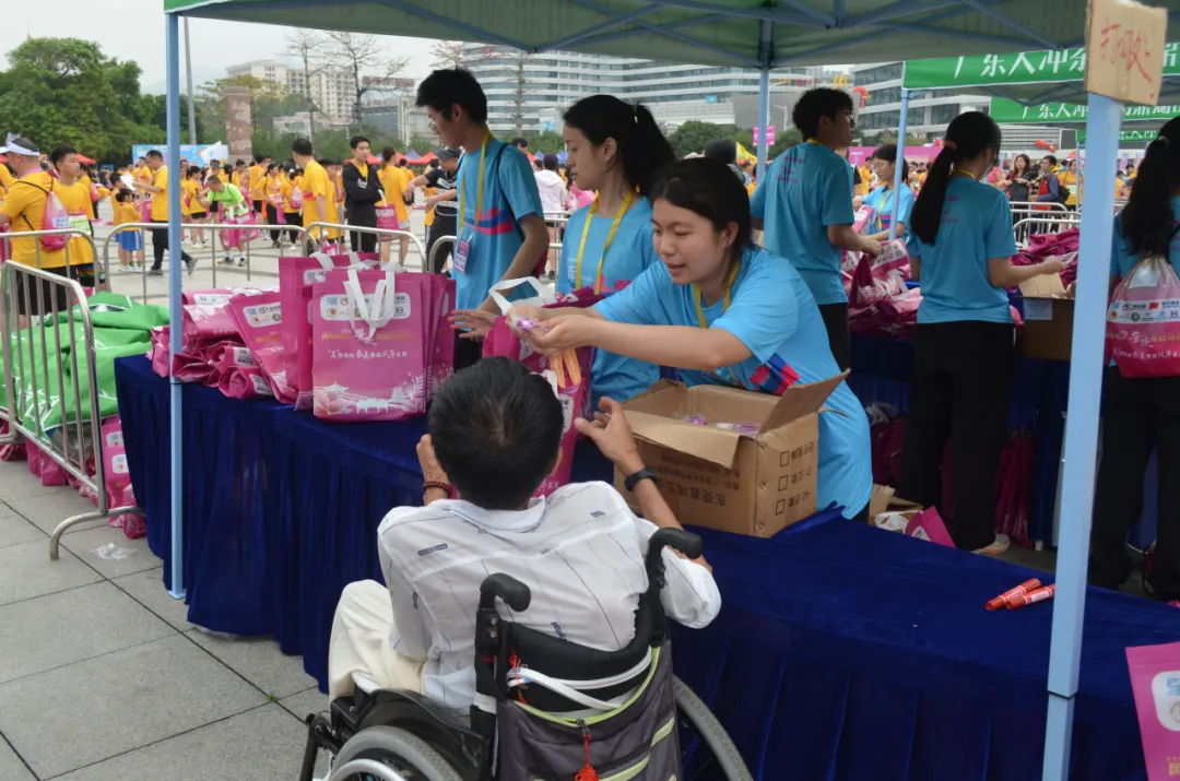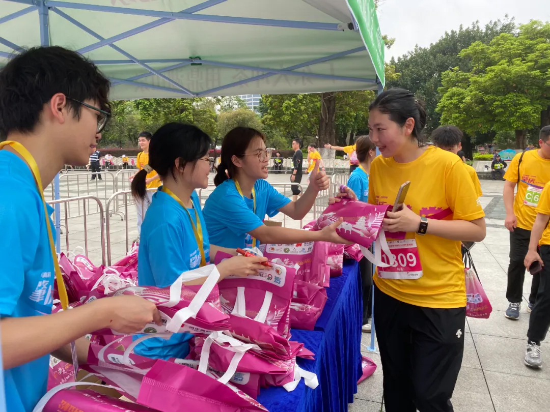 图 williamhill威廉希尔官网志愿者在欢乐跑终点发放完赛物资