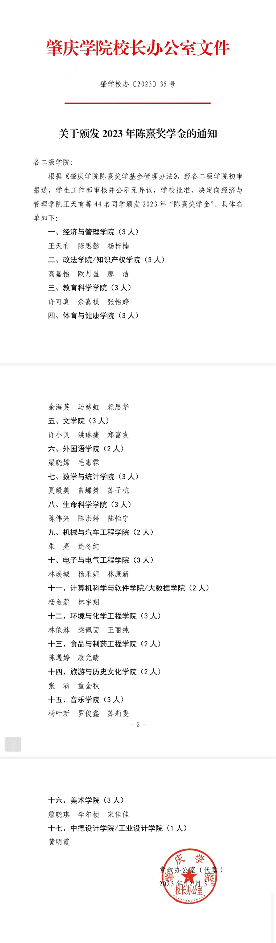获奖名单见校办(2023)35号文《关于颁发2023年陈熹奖学金的通知》