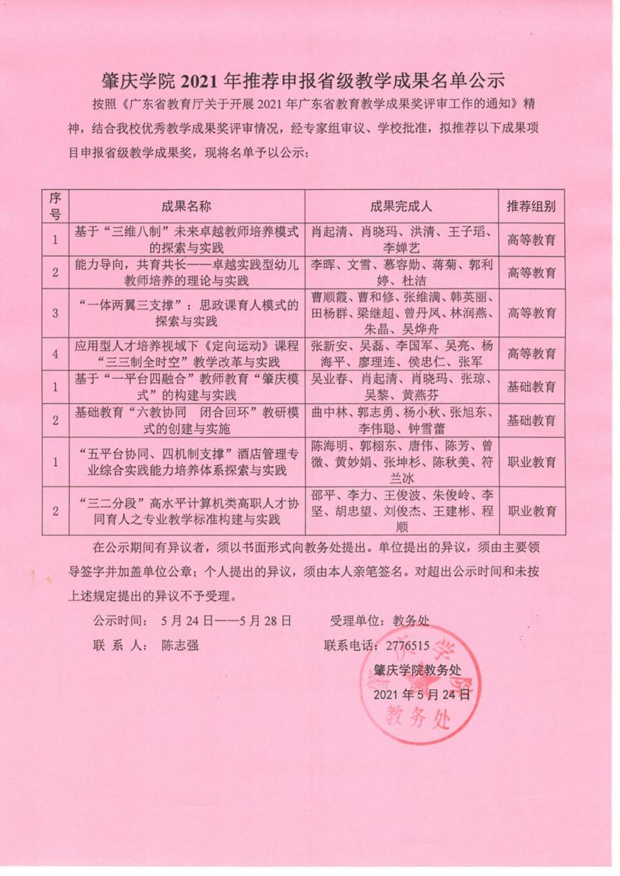 按照《广东省教育厅关于开展2021年广东省教育教学成果奖评审工作的通知》精神,结合威廉希尔官网优秀教学成果奖评审情况,经专家组审议、学校批准,确定推荐申报省级教学成果奖名单,具体情况如图。