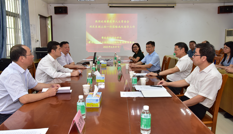 本网讯 6月27日,肇庆市人大常委会党组副书记、副主任刘庆良等一行,莅临政法学院调研考察、指导工作。参加此次调研的还有:市人大常委会党组成员、秘书长李家峰,市人大法制委主任委员、常委会法工委主任徐天茂,市人大常委会法工委办公室主任张凯翔,市人大机关信息中心副主任黄伯光。校长吴业春、学院党委书记侯玉基、院长祁建平等陪同调研。