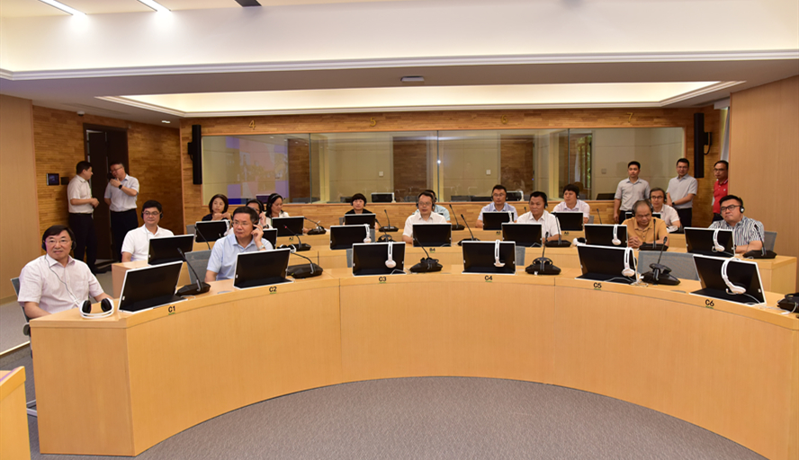 在广外领导的陪同下,吴业春一行参观了同声传译实验室、校史馆,实地感受广外推进内涵建设和品牌宣传的成效。