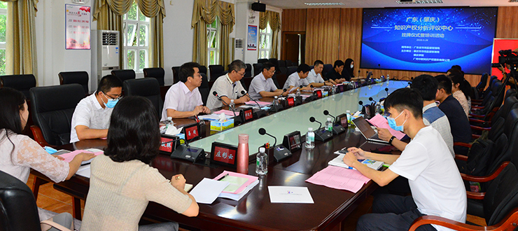 校长吴业春,省市场监督管理局知识产权促进处副处长李伟、肇庆市市场监督管理局副局长王建良、广州中新知识产权服务有限公司副总经理郝爱昕出席仪式,并共同为肇庆知识产权分析评议中心揭牌。政法学院、知识产权学院院长祁建平主持,科技处、社科处副处长周丽参加。