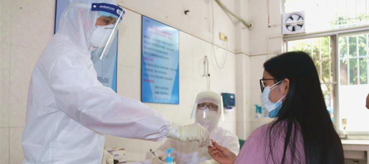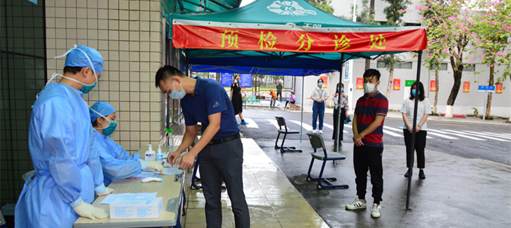 演练中,校医院为就诊学生进行体温测量,发现一人有发热症状,立即引导其进入发热诊疗室进行应急处置,并对其进行流行病学史调查,将情况向防控办主任报告。防控办立即安排转送专用车接运学生到市第一人民医院发热门诊就医,学生所在学院辅导员负责陪同跟进。受检学生在新冠检测结果确定为阴性后,回到学校健康观察区进行观察。