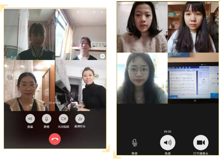 美术、音乐等术科学院,网络授课主要包括理论课和实践课两大方面,老师可根据专业特色选择平台。理论课老师会选择智慧树、雨课堂这些平台,专业技能课老师会选择可以面对面视频播放的平台,如腾讯会议、QQ群等,对学生进行网上一对多指导。音乐学院声乐教师郑以漩连续上了三节课,以小班上课形式,采用直播方式为学生做好发声示范,虽然不如面对面直接,但看到学生们学得很用心,她感到很欣慰。