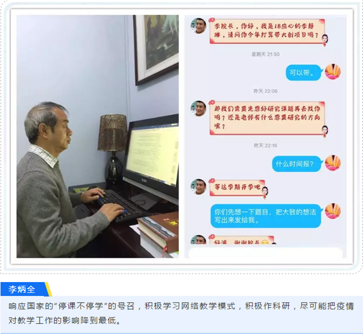 李教授还积极指导学生的科研。充分利用网络、微信、QQ、电邮等平台,毕业生的论文写作、非毕业生的论文选题、学生的大创项目申报等,他都给予耐心指导。