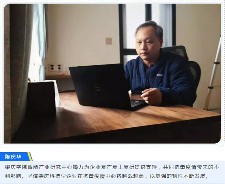 陈庆华副教授通过在线方式就企业存在的各种问题同企业人员深入交流,辅导企业进行项目申报、建立研发中心、产学研合作。目前他与高新区肇庆市方程科技有限公司达成合作意向。此外,寒假期间,陈庆华对智能产业服务中心申请的发明专利作后续修改工作,一种汽车托臂组件自动上料冲压系统及其控制电路和一种多工位联动数控合卷机及其控制系统发明专利近日获得授权。他与广东嘉裕龙食品机械制造有限公司联合申报的“一种3D增材制造后工序的全自动清洗装置及其方法 ”和“一种3D增材运动系统及其方法”已进入实审。
