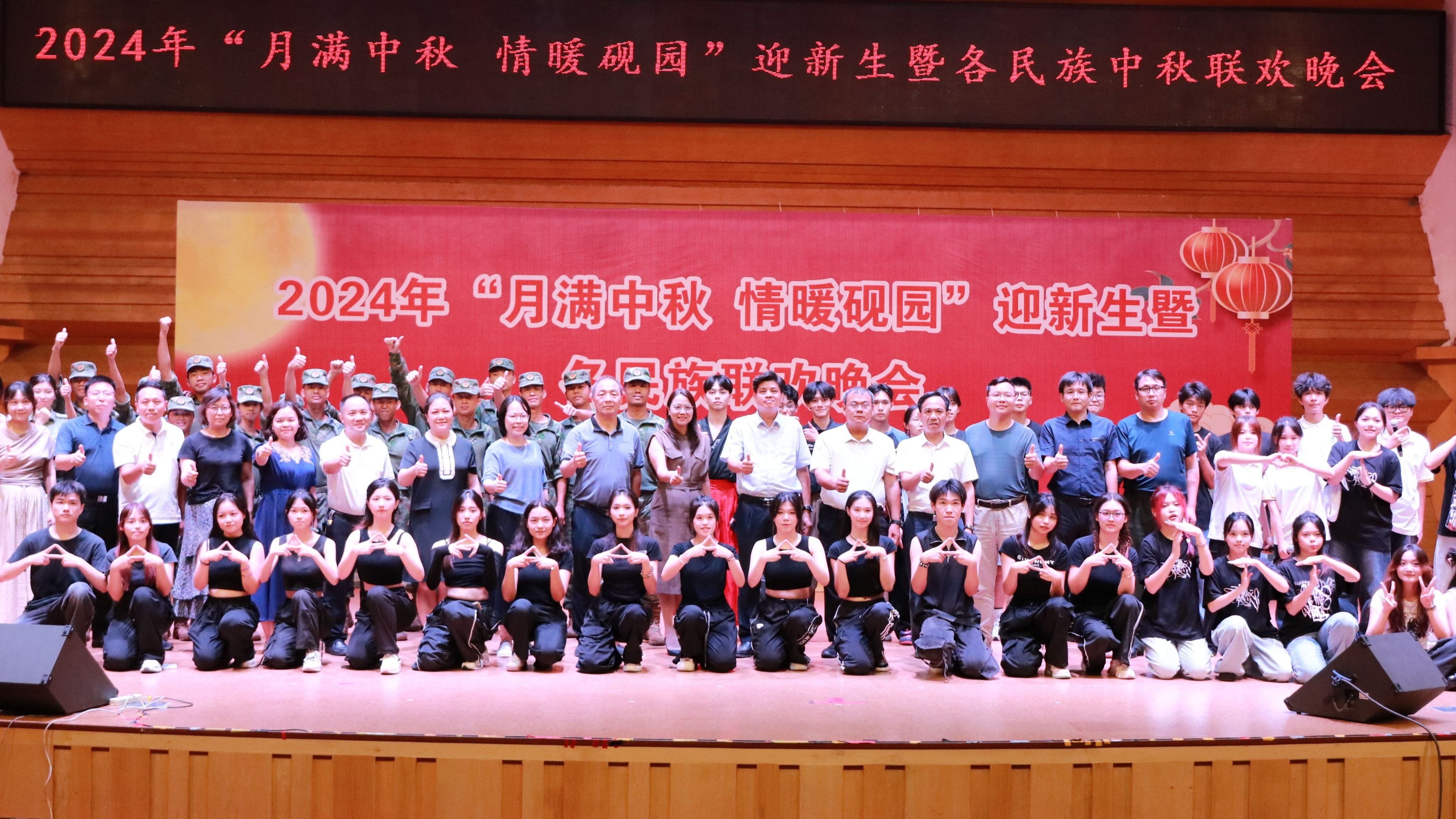 本网讯 为庆祝中秋佳节,同时热烈欢迎2024级新生的到来,9月17日晚,学校“月满中秋 情暖砚园”迎新生暨各民族中秋联欢晚会成功举办。晚会主会场设在williamhill威廉希尔官网陈熹音乐厅内,各二级学院在各自训练场举行了分会场欢庆活动。学校党委副书记欧洪湛、副校长李新昌出席活动,各单位相关负责人参加主会场活动。