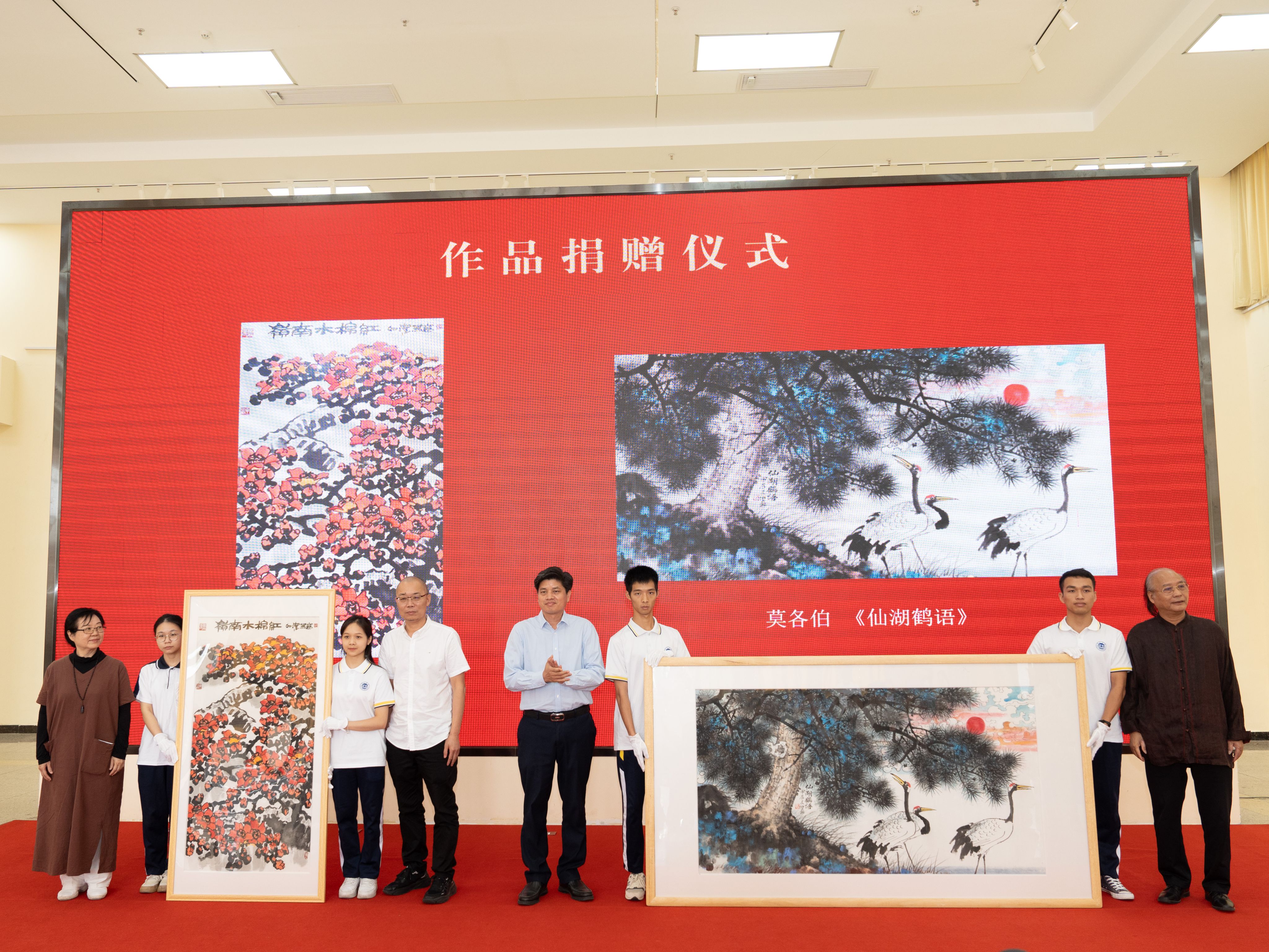 期间,为感谢黎雄才美术馆对此次展览的支持,省文史馆馆员梁如洁、莫各伯分别将一张书画佳作捐赠给黎雄才美术馆收藏,学校党委副书记欧洪湛和肇庆美术馆/黎雄才美术馆馆长李小军代表美术馆接收捐赠作品。