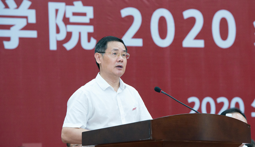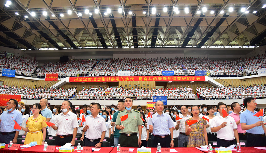 校领导班子、校长助理、党委委员出席开学典礼,相关职能部门负责人、各二级学院党委书记、院长、副书记、辅导员、带班党员、新生班班主任、学生党员及全体2020级新生参加。校党委副书记谢冠华主持。