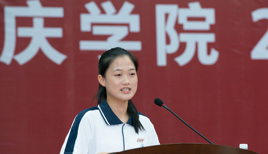 老生代表、政法学院2017级法学专业刘虹同学和新生代表、教育科学学院2020级应用心理学专业陈珈羽同学分别发言,表达对师弟师妹们的美好祝愿,以及开启美好大学生活的信心和决心。