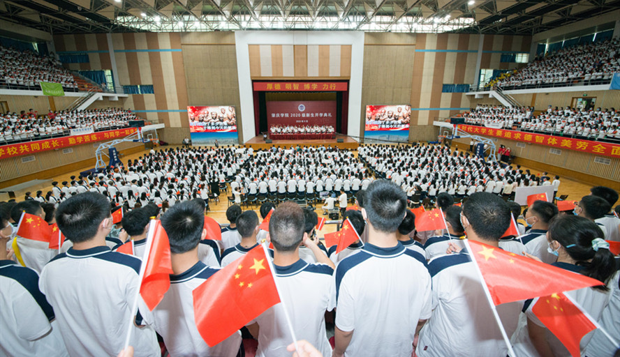 现场,新生们身着校服,有序就坐,英姿抖擞,姿态昂扬,聆听学校送给他们的殷切寄语,以这次“开学典礼”作为大学“第一课”,满怀憧憬投入大学新生活。