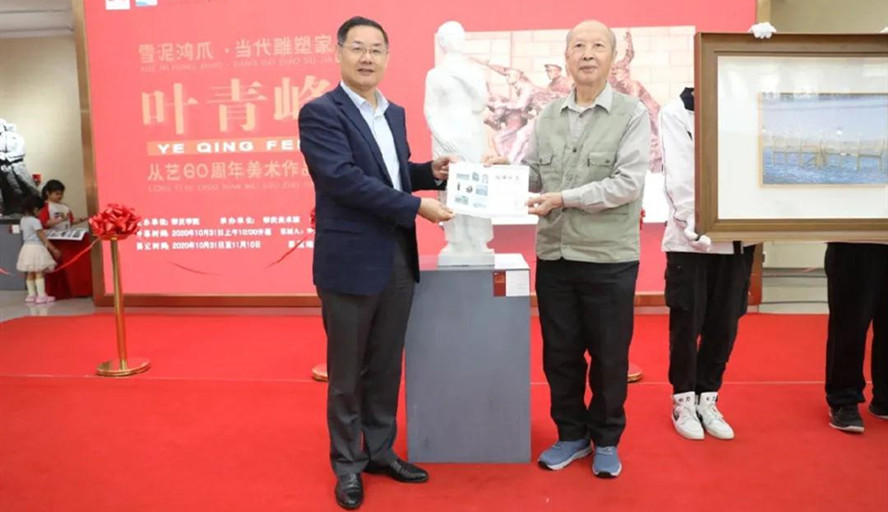 开幕式中,美术学院82级、85级、86级、89级毕业生代表先后向叶青峰赠送了贺画与锦旗,在场的领导嘉宾共同见证画册《雪泥鸿爪·当代雕塑家叶青峰从艺60周年美术作品集》首发。