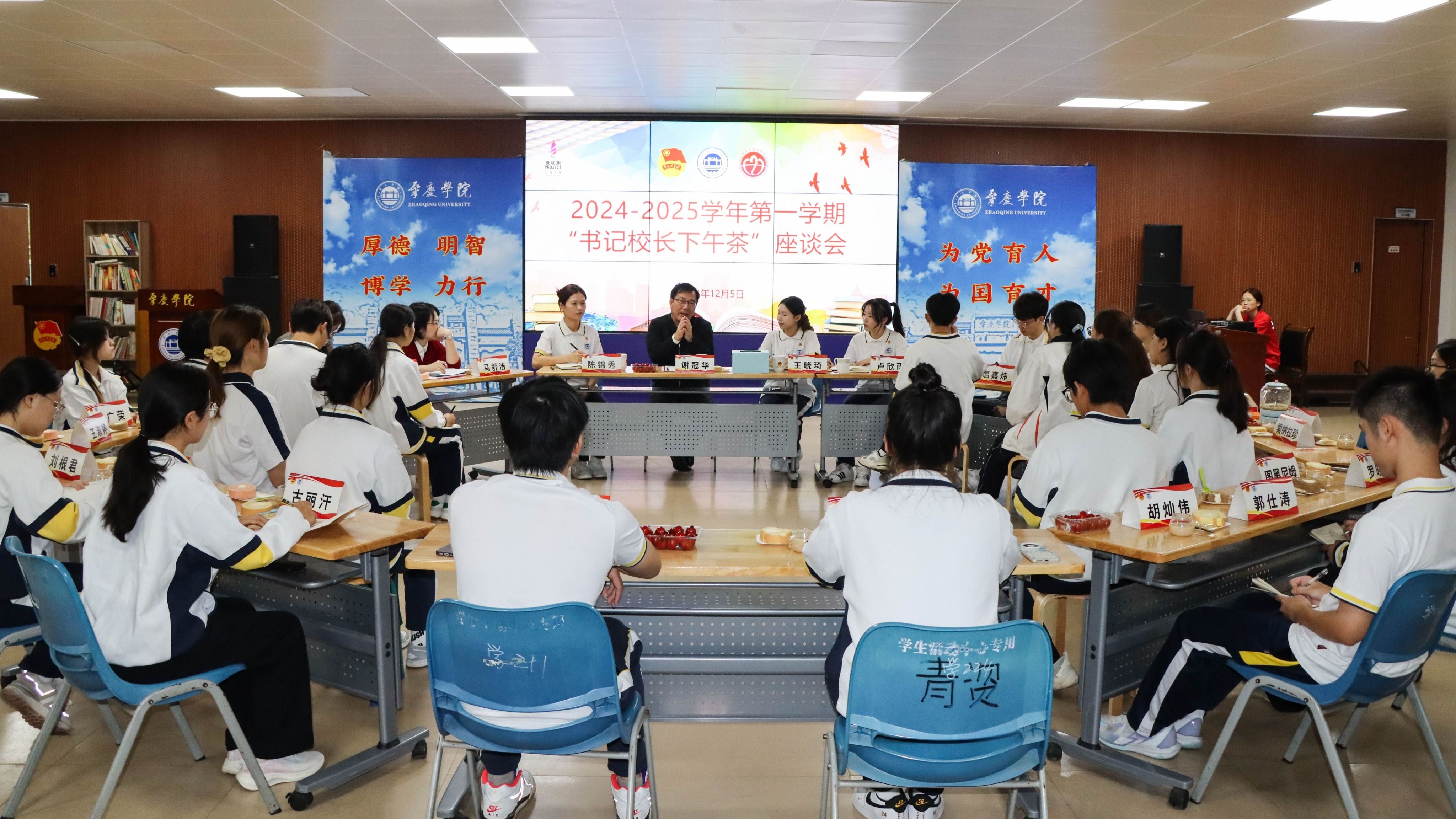 本网讯 12月5日,2024-2025学年第一学期“书记校长下午茶”座谈会召开,校党委书记谢冠华与学生代表进行面对面交流。各民族学生代表及校团委团干参加本次座谈。