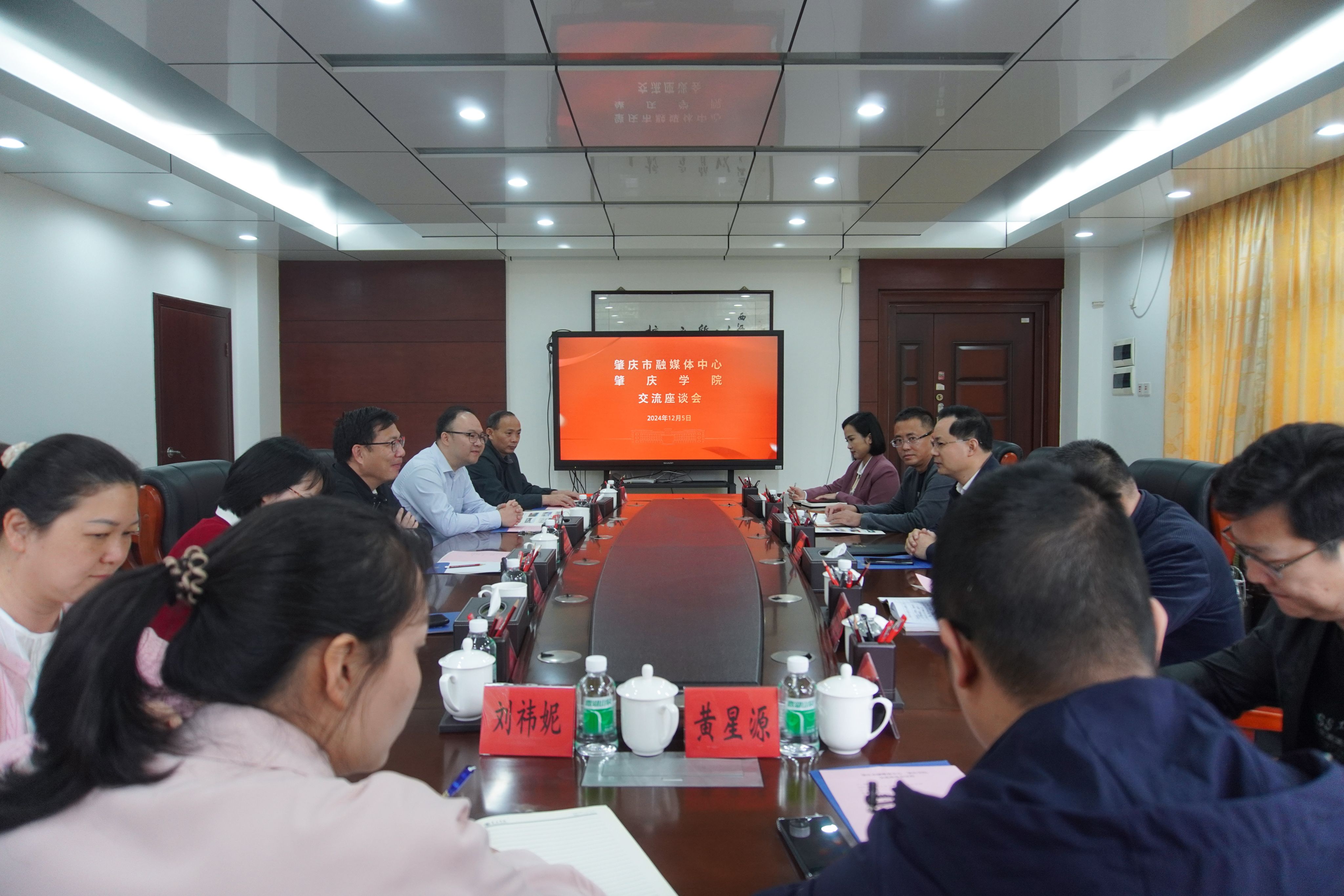 本网讯 12月5日,肇庆市融媒体中心主任谢政一行来校交流。校党委书记谢冠华出席座谈会,学校宣传统战部、文学与传媒学院、音乐学院负责人参会。