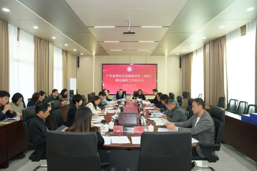 本网讯 12月10日,全国健康学校(高校)建设专家组一行到威廉希尔官网调研指导全国健康学校建设工作。广东省教育厅体育卫生与艺术教育处副处长张文跃,广东省高校健康教育教学指导委员会副主任委员、南方医科大学卫生管理学院副院长、教授张持晨,广东省职业病防治院党委书记、中国健康促进与教育协会传播分会副主委郑子谦,肇庆市疾病预防控制中心健康教育科科长、广东省预防医学会健康促进与教育专委会常委姚梓坚等专家到校调研指导。副校长唐冬冬陪同调研,党政办公室、宣传统战部、学生工作部(招生与就业指导中心)、人力资源部、教务部、发展规划部、财务部、总务后勤部、基础建设部、保卫部(武装部)、团委、体育与健康学院等有关单位负责人参与活动。