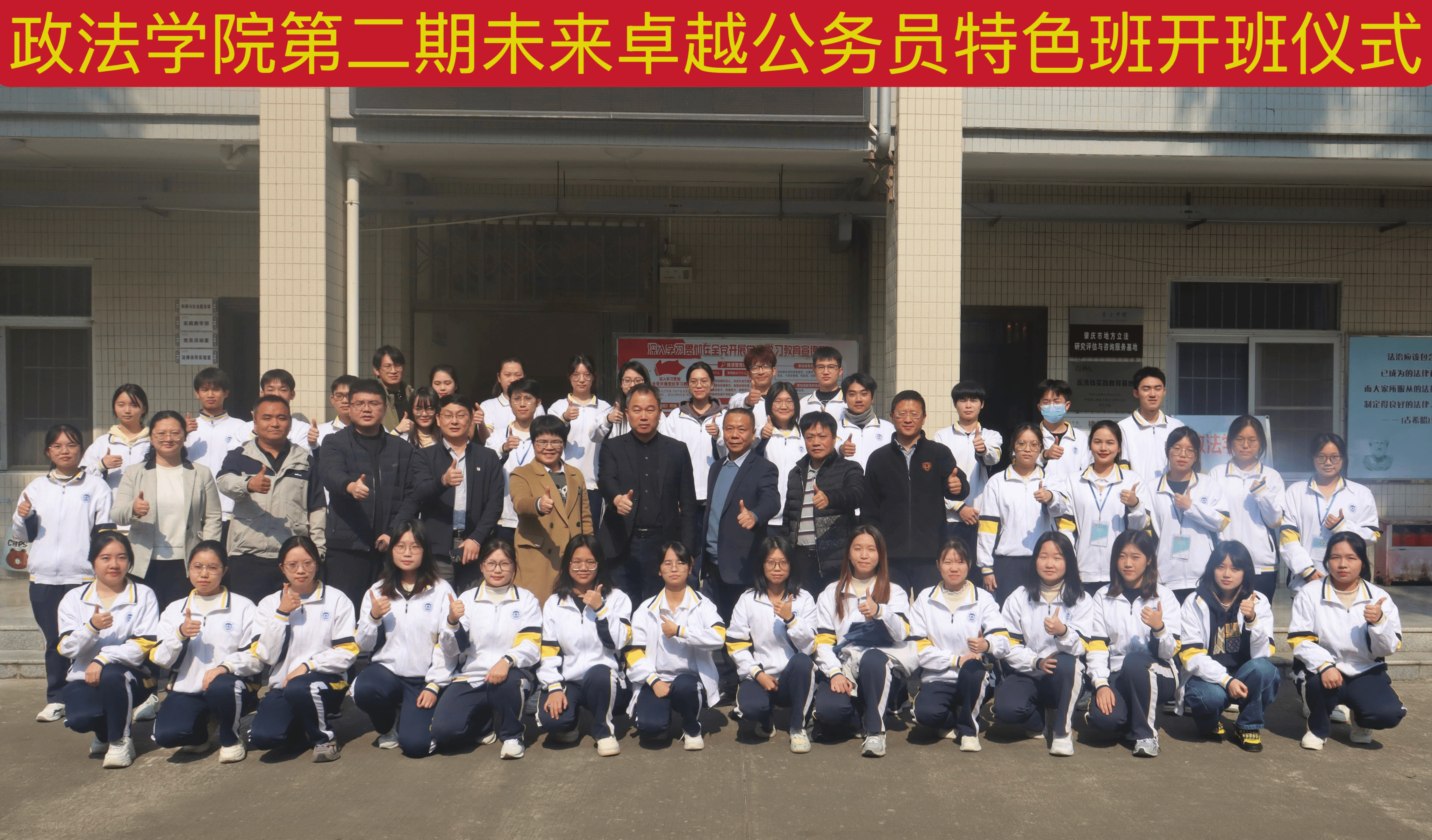 本网讯 12月30日,政法学院第二期未来卓越公务员特色班开班仪式顺利举行。副校长肖起清出席,政法学院全体领导、第二期卓越班教师代表、第一期卓越班学生代表和第二期卓越班学生参加了典礼。