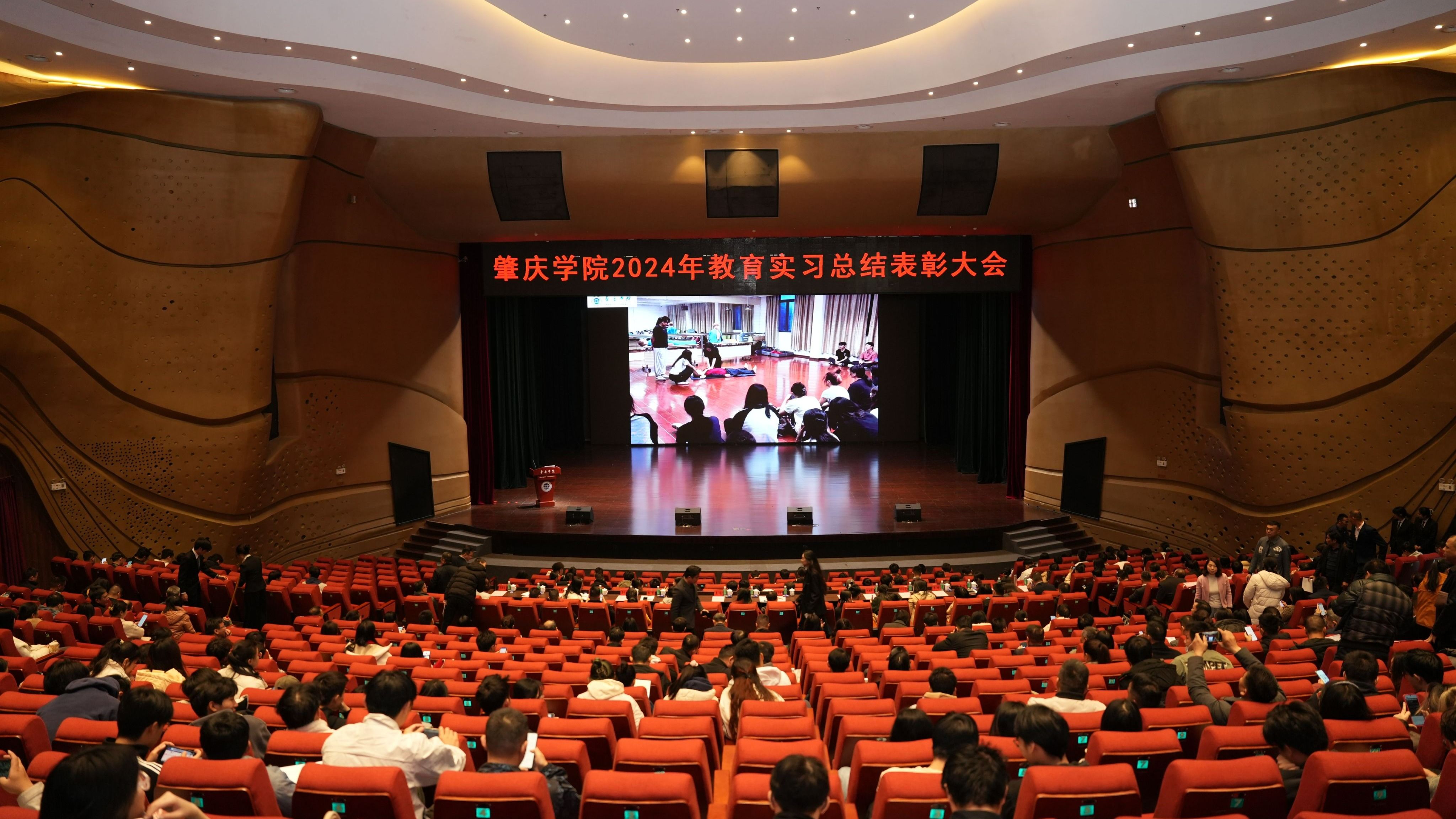 副校长肖起清出席会议,教师教育学院(教师发展中心)党总支书记植可焕主持。相关职能部门负责人、师范专业二级学院负责人、2024年实习生代表,总结表彰大会协办单位主要负责人、教育实习基地学校代表、实习指导教师代表共600多人参加会议。
