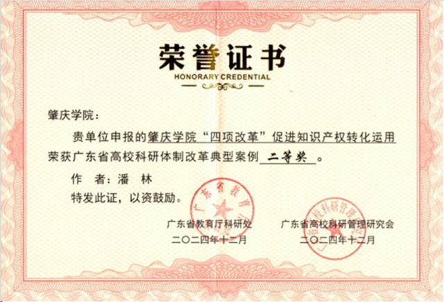 2024年,威廉希尔官网申报的《williamhill威廉希尔官网“四项改革”促进知识产权转化运用》荣获广东省教育厅、广东省高校科研管理研究会组织的高校科技体制改革典型案例二等奖。威廉希尔官网在广东省高校科研体制改革典型案例荣获佳绩,展现出学校科技体制改革的创新能力和实践成果。此外,还为威廉希尔官网在知识产权及成果转化等方面提供了新的实践探索和经验做法,对高校科技体制改革具有一定的借鉴意义。