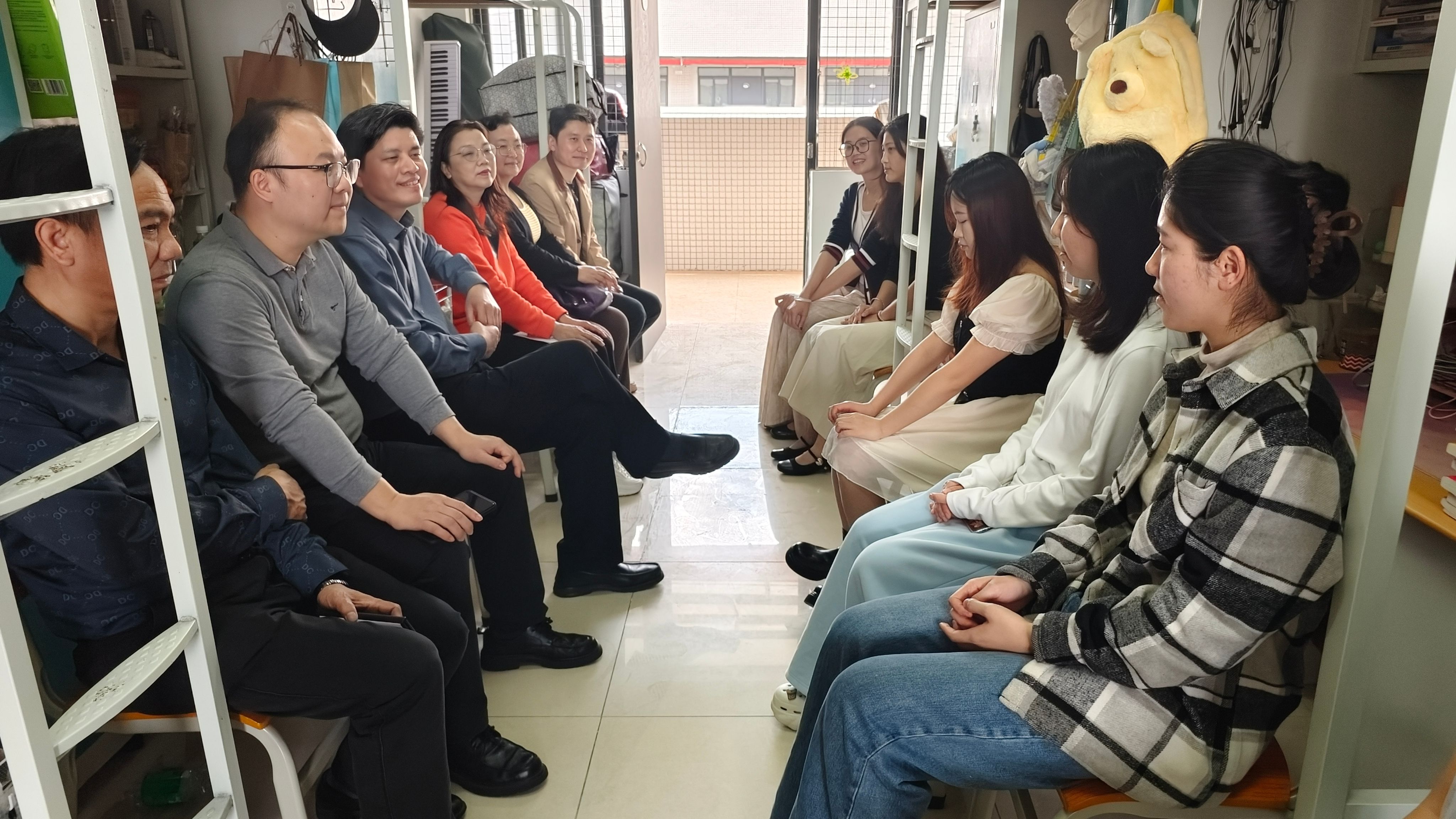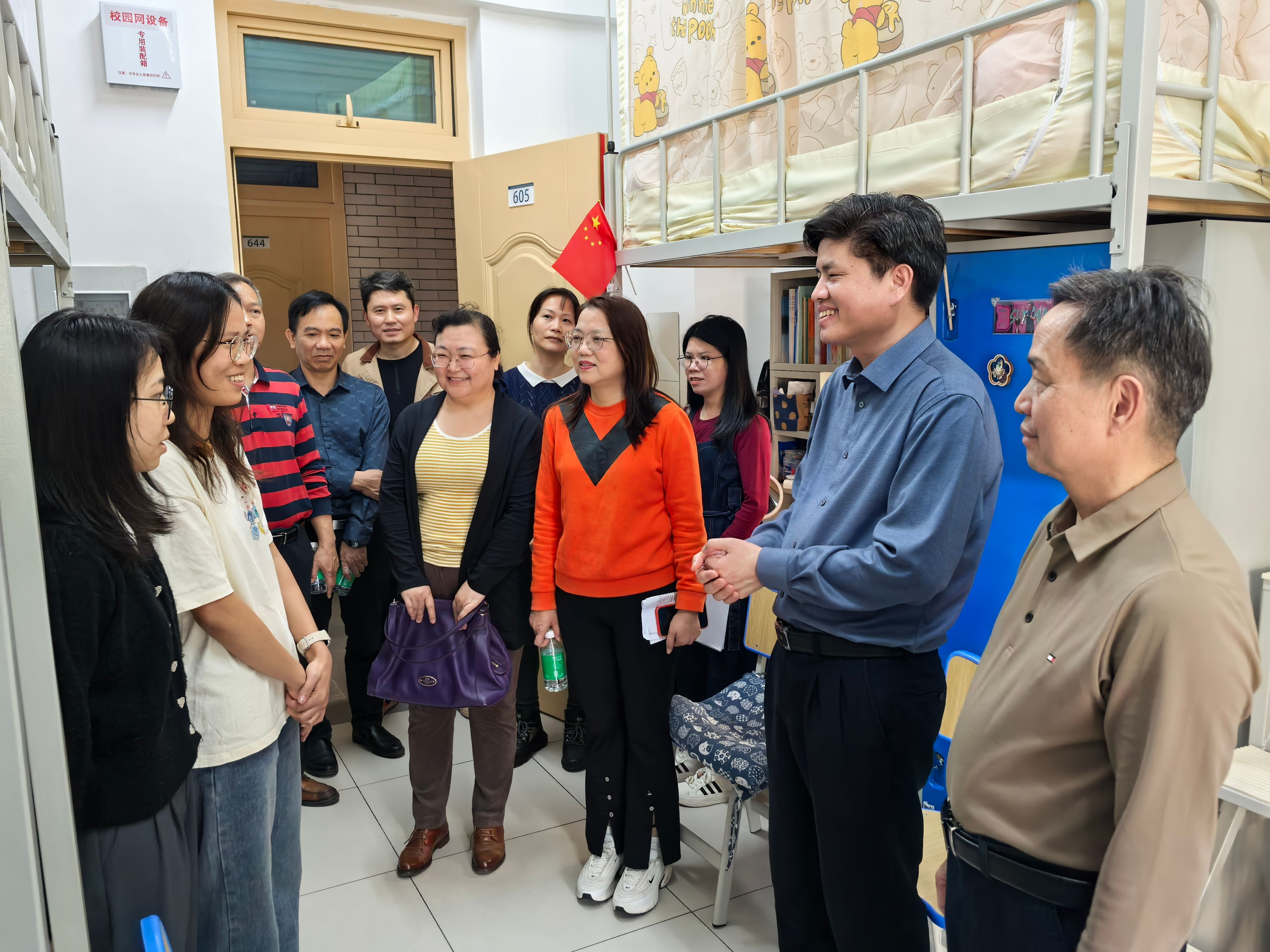 走访期间,欧洪湛一行与同学们亲切交流,详细询问了他们的学习、生活、就业及新学期规划情况,希望大家尽快调整状态,注重身心健康,积极参与校园文化活动,以饱满的热情和积极向上的态度开启新学期的篇章。欧洪湛一行还查看了宿舍卫生环境、消防设施、用电安全及生活配套条件,要求相关部门及时解决学生实际问题,营造安全舒适的居住环境。