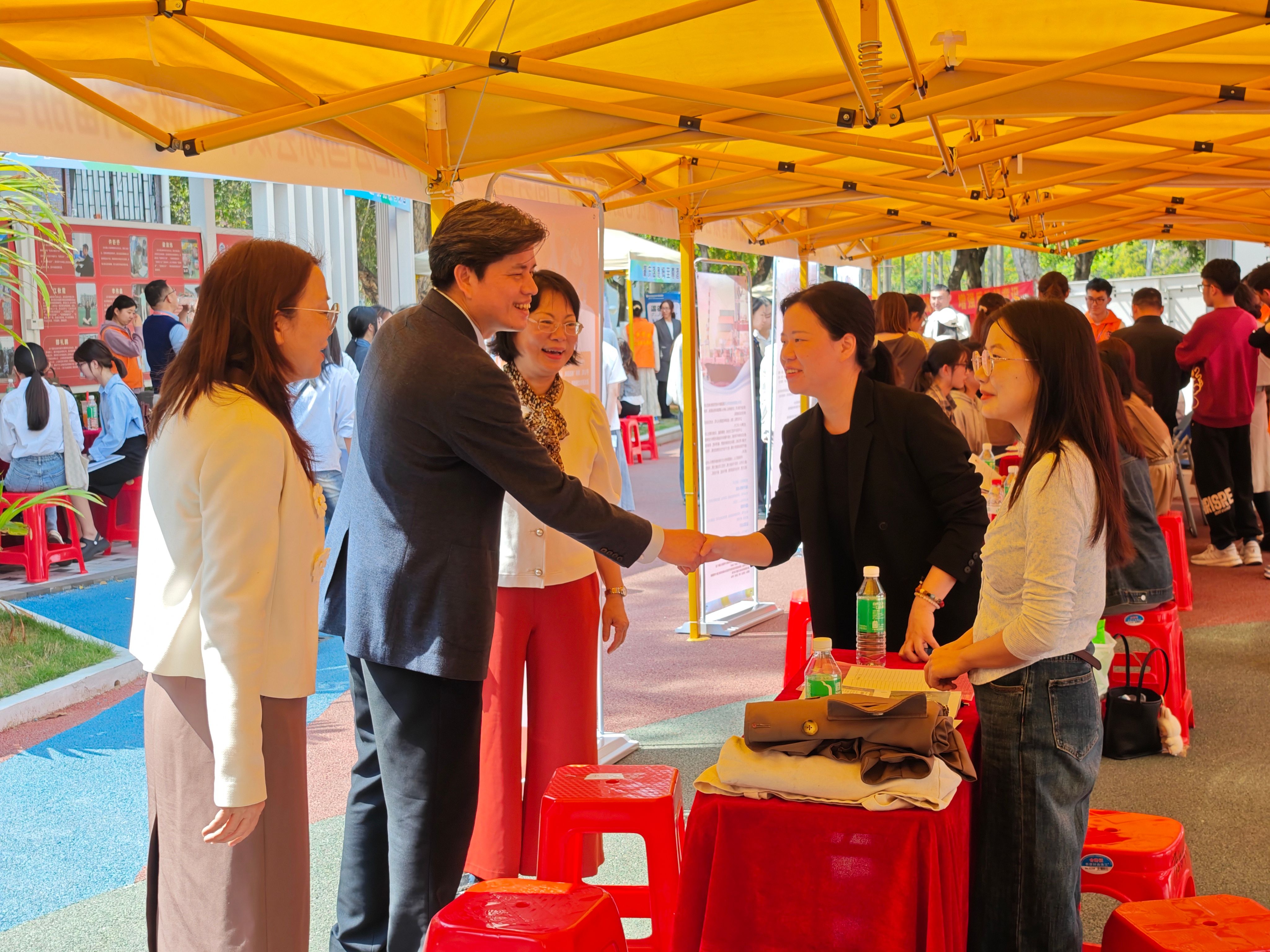 欧洪湛深入招聘展位了解企业用人需求和人才市场发展,和企业招聘代表以及求职应聘的学生们进行了深入的交流。另外,他向优秀校友企业提出,今年是学校办学55周年,邀请他们参加学校55周年校庆。