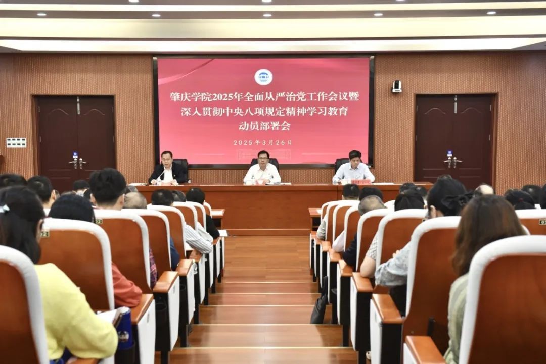 本网讯 3月26日,学校召开2025年全面从严治党会议暨深入贯彻中央八项规定精神学习教育动员部署会议,校党委书记谢冠华作动员讲话,党委副书记欧洪湛主持会议并部署安排学习教育工作,纪委书记、广东省监委驻williamhill威廉希尔官网监察专员王克俭作学校2025年党风廉政和反腐败工作系统部署,学校领导、党委委员、纪委委员出席,全体中层领导干部,工作专班成员参加会议。