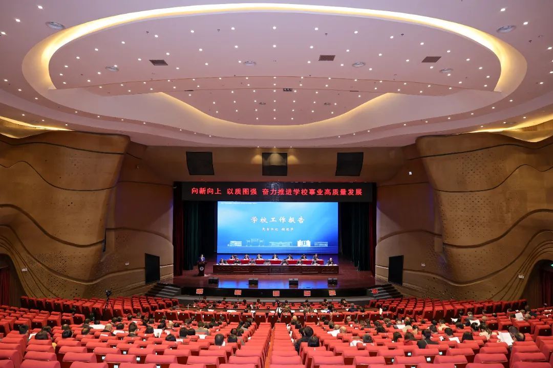 谢冠华在会上作学校工作报告。他以“九个坚持”为纲回顾了2024年学校的主要工作:一年来,我们坚持举旗定向,全面加强党的领导和党的建设,学校凝聚力向心力进一步增强。我们坚持培根铸魂,全面落实立德树人根本任务,“大思政”工作体系更加完善。我们坚持破立并举,全面深化教育教学改革,人才培养质量有效提升。我们坚持立柱架梁,全面实施“学科攀峰战略”,学位点建设开启新征程。我们坚持创新驱动,全力推进科技创新与产学研深度融合,科研实力勇攀新高峰。我们坚持筑巢引凤,大力推进人才强校战略,师资队伍整体素质显著提高。我们坚持开放办学,不断深化对外交流合作,国际化办学开拓新局面。我们坚持依法治校,不断强化内部管理,办学治校水平有效提升。我们坚持师生为本,持续增进师生福祉,校园和谐氛围更加浓厚。