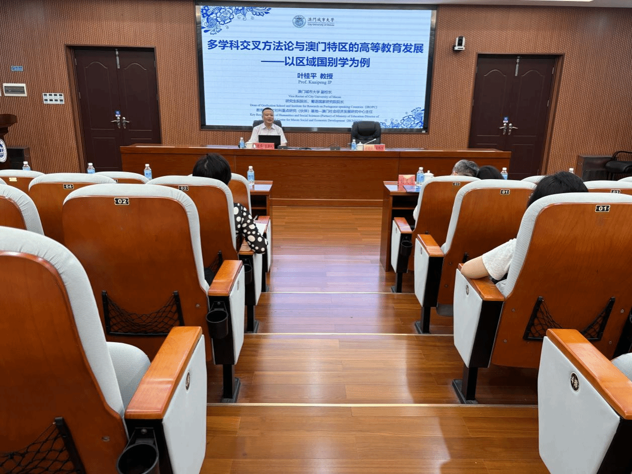 交流期间,叶桂平以“多学科交叉方法论与澳门特区的高等教育发展——以区域国别学为例”为题开展学术讲座。讲座内容立足澳门特区高等教育发展实际,从区域国别学的学科内涵、理论体系、实践路径及建设意义等维度展开系统阐释,梳理了区域国别学的学科概况与核心要素。他结合澳门高等教育发展现状,分享了澳门城市大学在区域国别学领域的实践经验。同时,他充分肯定williamhill威廉希尔官网区域国别研究的区位优势,建议依托粤港澳大湾区城市资源,深化与澳门高校的学术合作,打造具有肇庆特色的研究品牌。
