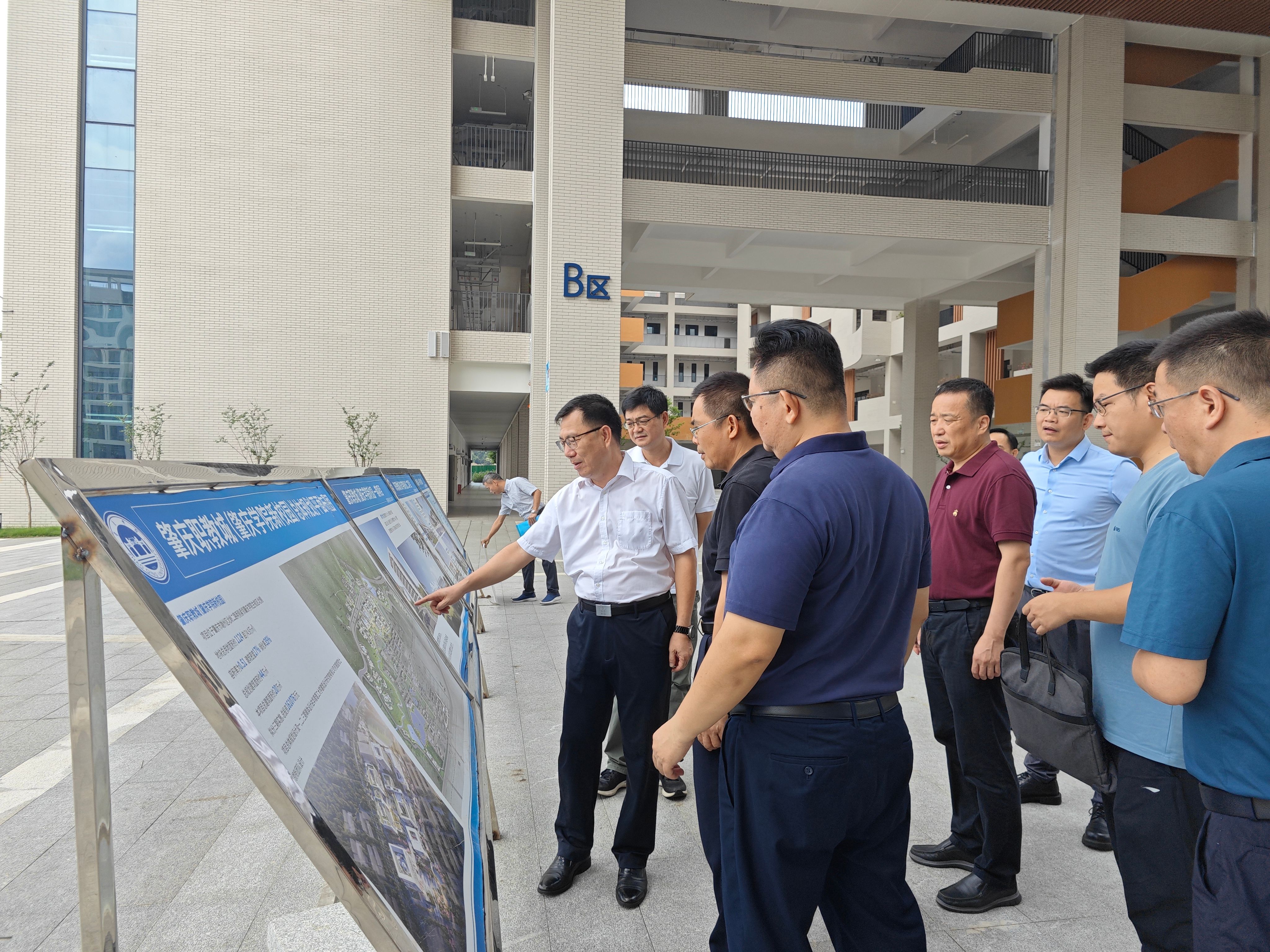 黄华东带队先后来到新建教学楼、西区学生公寓项目建设现场,详细了解项目建设情况,肯定了新校园一期项目的建设成果,指出新校园作为高鼎端科教走廊的龙头,要充分发挥引领作用,统筹用好中央预算内投资,加快推进新校园二期项目建设进程。