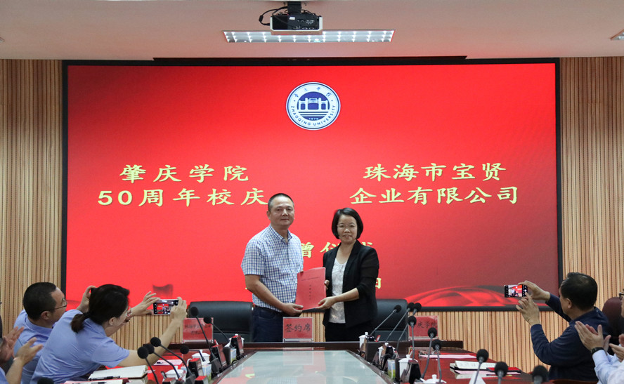 仪式上,校教育发展基金会理事长沈钦萍分别代表学校与珠海市鑫茂餐饮管理有限公司总裁张金乐、珠海市宝贤企业有限公司董事长吴秋贤签订捐赠协议。校教育发展基金会秘书长白志明代表学校接收两家公司捐赠的支票。随后,威廉希尔官网向两家公司颁发捐赠证书。