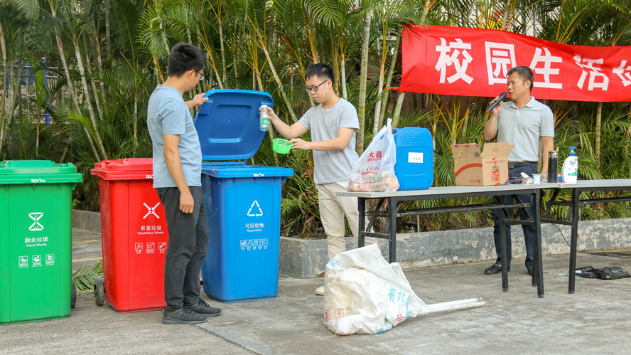 本次活动旨在让师生对垃圾分类形成更深刻的理解与认识,对垃圾分类的重要性与意义上形成共识。现场,工作人员讲解了可回收物、有害垃圾、厨余垃圾、其他垃圾的不同分类概念、种类类别、投放注意事项等,并现场演示四类垃圾具体投放操作方法。现场观众对各类垃圾具体处理方法展开提问,工作人员一一解答。目前,威廉希尔官网两个校区共设定5个四分类垃圾桶投放点,其中主校区4个,星湖校区1个。此外,教学楼和办公区域设定两分类垃圾桶,生活区设定三分类垃圾桶投放点。