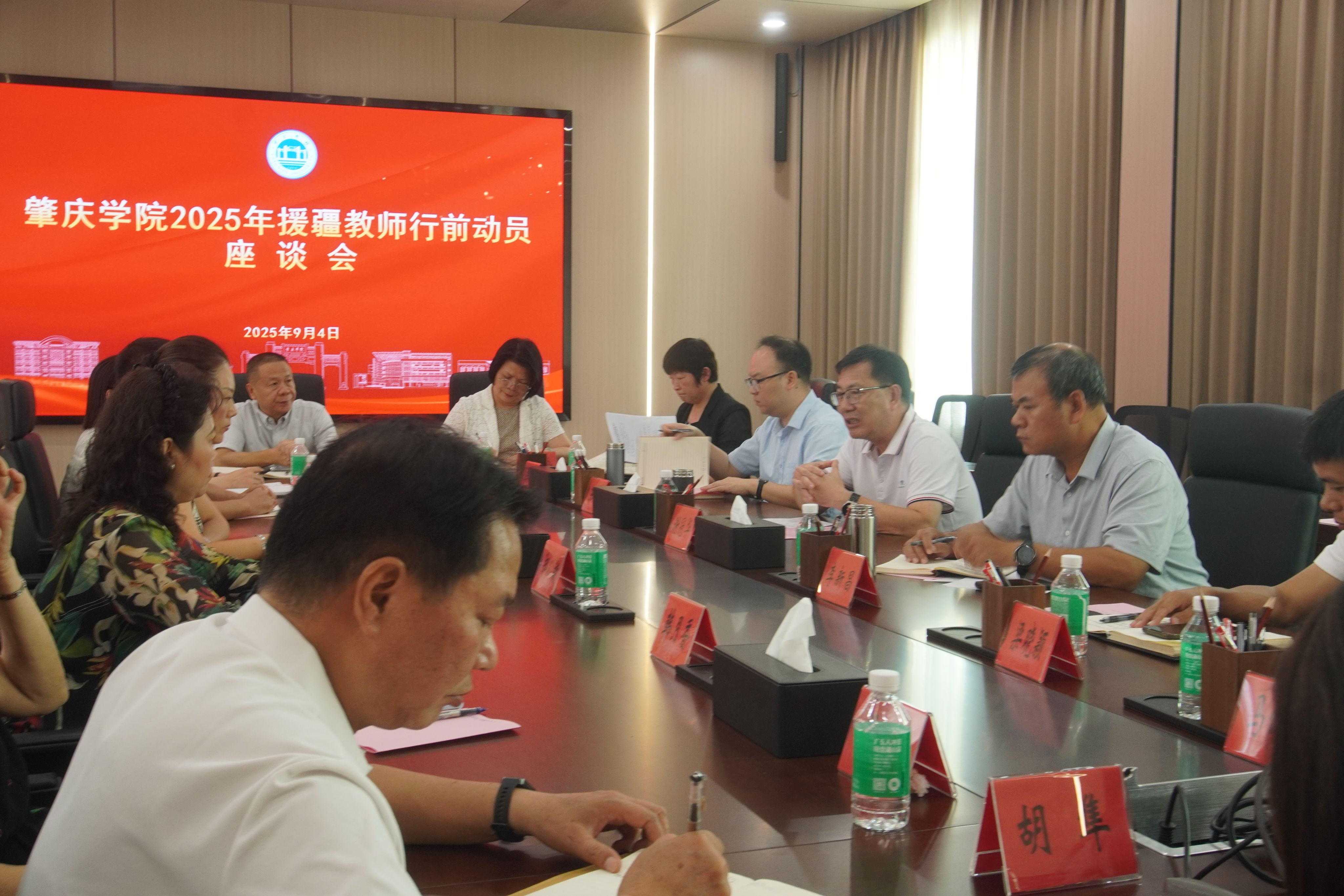 本网讯 9月4日上午,学校在行政楼第五会议室召开援疆教师行前动员座谈会。学校党委书记谢冠华、副校长李新昌出席,相关职能部门主要负责人、援疆教师所在单位党组织书记及全体援疆教师参会。会议由李新昌主持。
