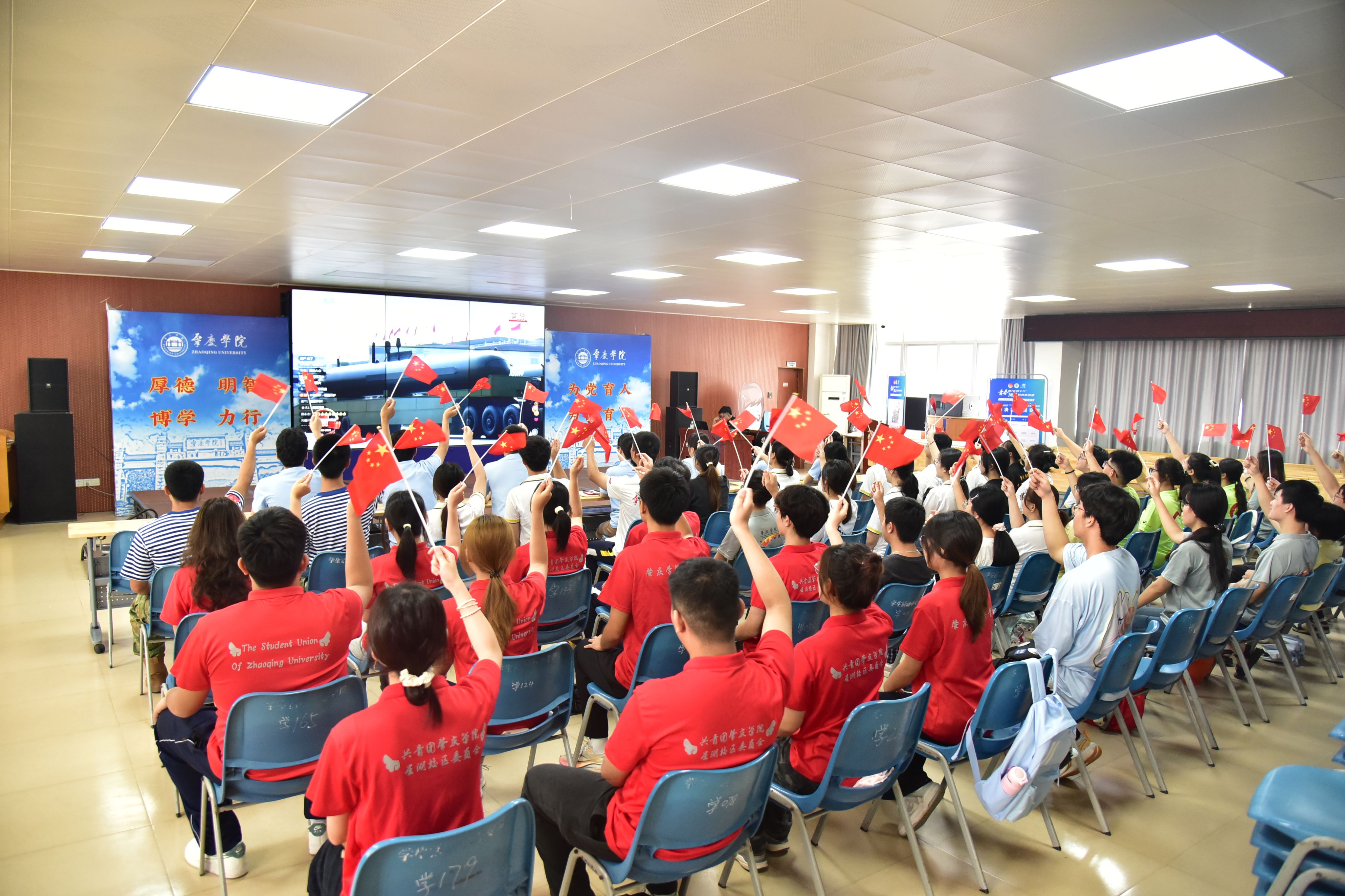 当步伐铿锵、装备精良的受阅方阵整齐划一地走过天安门广场时,现代化人民军队的威武雄姿与磅礴气势震撼人心。各会场内,师生们为之振奋,现场掌声阵阵,民族自豪感与爱国情怀在每个人心中激荡升腾。师生们挥舞着手中的五星红旗,齐声高唱国歌。红旗随着歌声澎湃涌动,与屏幕上庄严的阅兵盛景交相辉映。