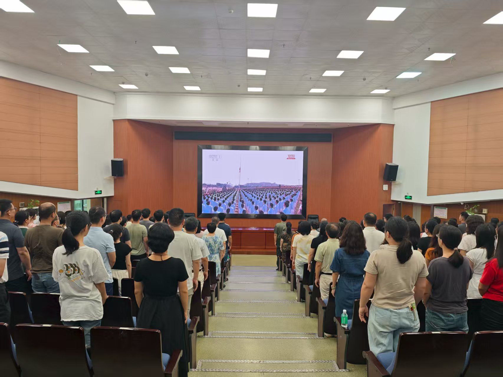 为铭记历史、缅怀先烈,激发广大师生爱国热情和民族自豪感,党委高度重视,提前部署,通过各种形式组织收看纪念中国人民抗日战争暨世界反法西斯战争胜利80周年阅兵式直播。全体在校校领导、党委委员,各单位主要负责人,各民主党派、统战团体负责人,各院系师生党员代表齐聚各个主会场、分会场,怀着崇敬的心情认真收看阅兵仪式现场直播。