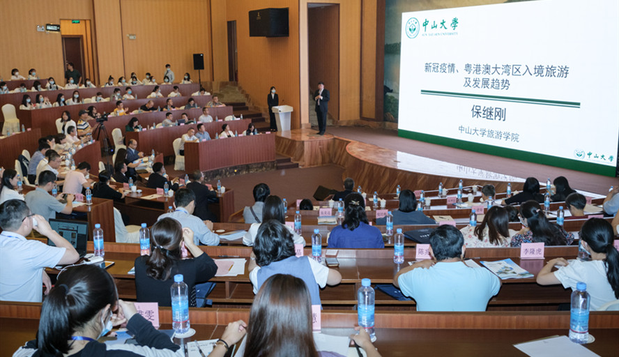 在主旨报告中,保继刚、卢小金、张婼、孙小龙、廖继武五位专家学者分别作报告,围绕“新冠肺炎疫情下粤港澳大湾区旅游发展”“跨境旅游合作区空间生产及其效应”“后疫情时代推动跨境体育旅游发展”“旅游产业制度与旅游经济增长”“核心地与边缘地间旅游另类现象理论探讨”等主题,阐述了各自领域的研究成果。