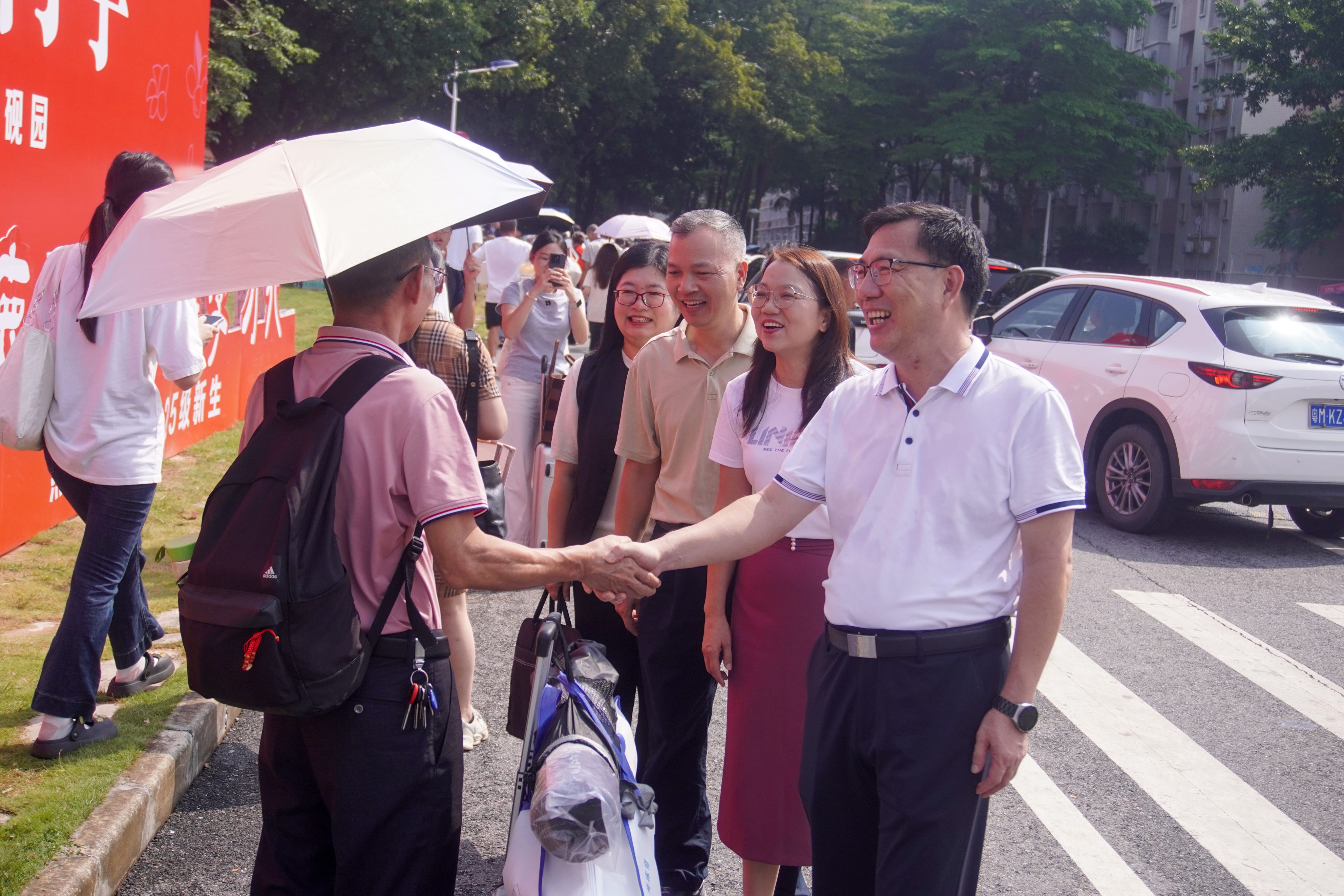 为保障迎新生顺利入学和校园秩序的维系,各二级学院提前搭好报到点摊位,带班党员与学院机构工作人员耐心指引新生核对信息提交材料;志愿者们耐心解答新生与家长的疑问,指引他们前往报道和宿舍楼;教官和保安们引导车辆有序入校,确保校内交通的顺畅和安全。