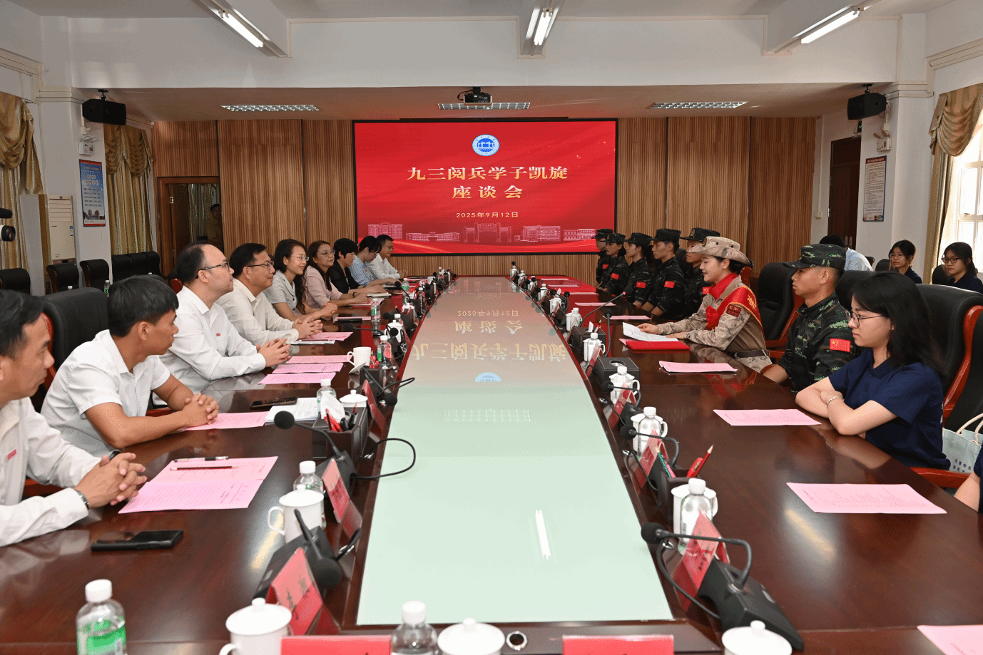 本网讯 9月12日,学校召开“九三”阅兵学子座谈会,欢迎威廉希尔官网优秀参阅学子王可心荣誉归来。校党委书记谢冠华,校长李琴,学校相关职能部门负责人,环境与化学工程学院党委书记刘远君、院长李湘等班子成员、辅导员及新生军训教官和青马工程学员代表参会。