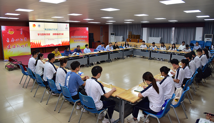校党委书记曾桓松与来自各学院的20余名学生代表亲切交流,并通过赠书勉励大家“学史明理、学史增信、学史崇德、学史力行”。党办校办、组织部、宣传部、学工部、教务处、就业处、马克思主义学院以及团委等职能部门负责人参加了座谈。
