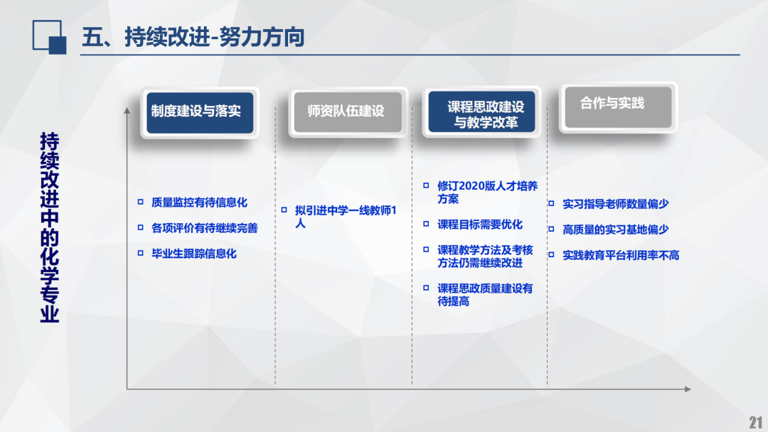 化学专业高度重视并全力以赴做好本次师范类专业认证工作,明确“学生中心、产出导向、持续改进”的认证工作理念,依据认证标准开展自评自建工作,在“以评促建、以评促改、以评促强”的持续改进过程中取得了显著的建设成效。