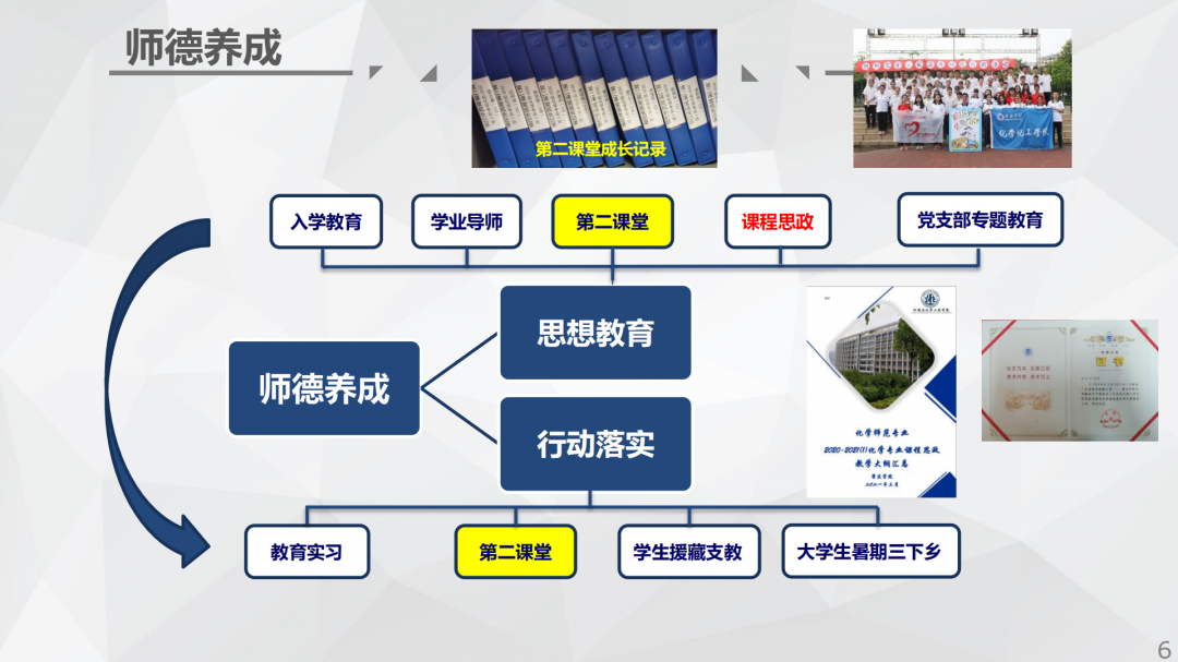 专家组一致认为,化学专业在人才培养过程中不断改革创新,形成了“4+6”育人新模式,构建了课内、课外与教育实习“三位一体”的教育实践平台,加强了化学师范教育与中学教师职业需求的融合对接,落实贯穿于人才培养全过程、能体现学生中心的学业导师制度,并通过推进课程思政和第二课堂育人,逐步形成了“重师德、强技能、深融合”的人才培养特色。