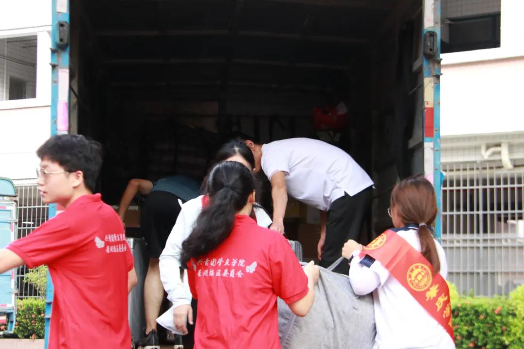 到达主校后,早有另一队志愿者在宿舍楼前迎候,他们协助将行李分类整理,分发到属于它们的新家。星湖学子的大学生活即将翻开新的篇章。