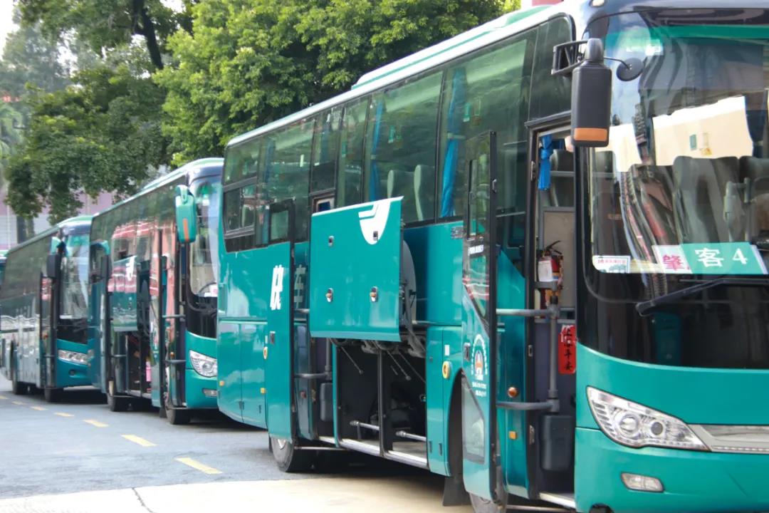 出发!发动机开足马力,客车和货车分载着学子与行李向主校进发。