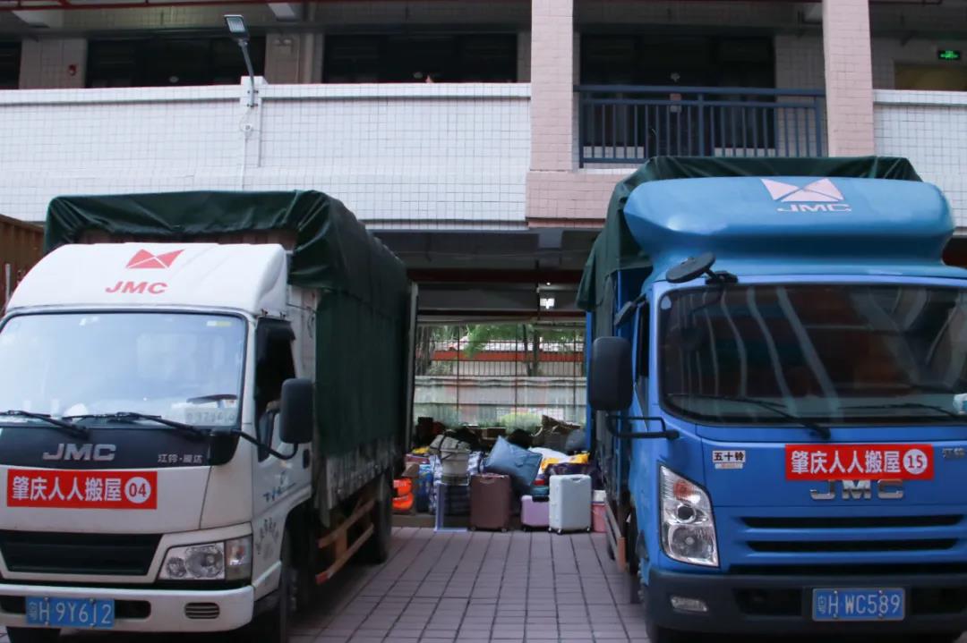 搬迁工作采取客车与货车组合搭配人货分载的方式进行,五个学院的922名2020级学生分三批登车前往主校区。