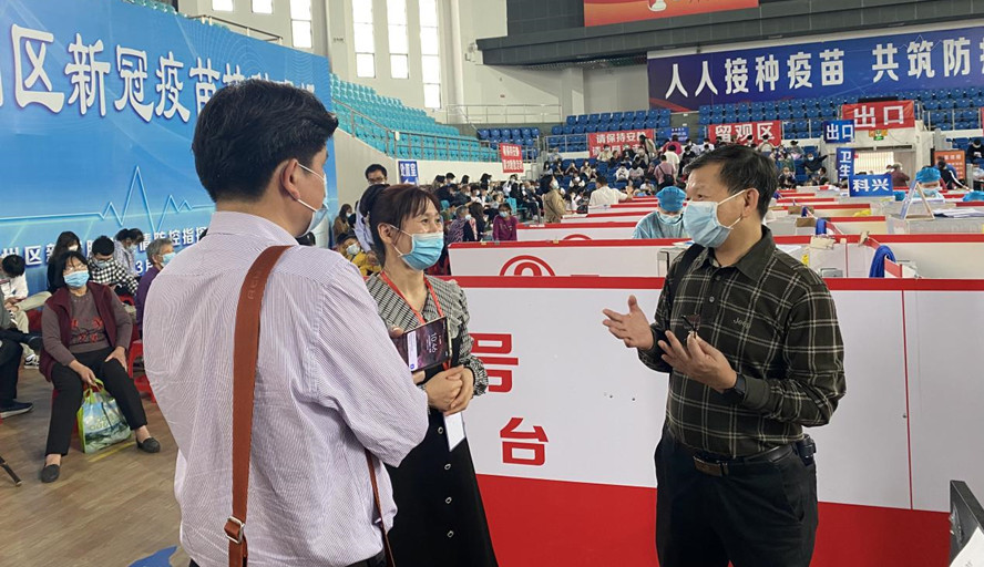 党委组织部部长欧洪湛,学工处处长陈向荣、副处长罗永全到接种现场检查指导工作,看望慰问现场工作人员,了解学生接种情况。在校律委会志愿者和医务工作人员的引导下,所有学生顺利完成接种。