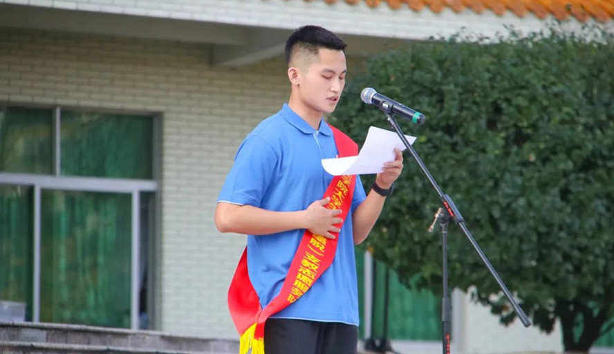队长钟涛璟代表支教队员发言,表达在墨脱奉献青春的决心,并承诺将努力奋斗,争当砚园表率,用实际行动交出令学校满意的答卷。