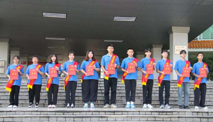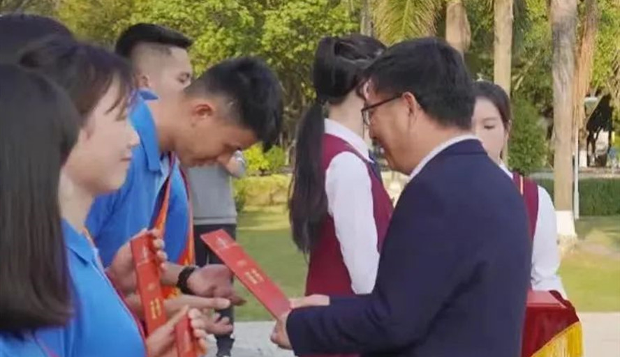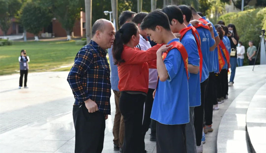 出征仪式上,学校领导、相关职能部门和二级学院领导向第九批援藏支教志愿服务队授旗,并为全体成员颁发证书、颁授绶带。