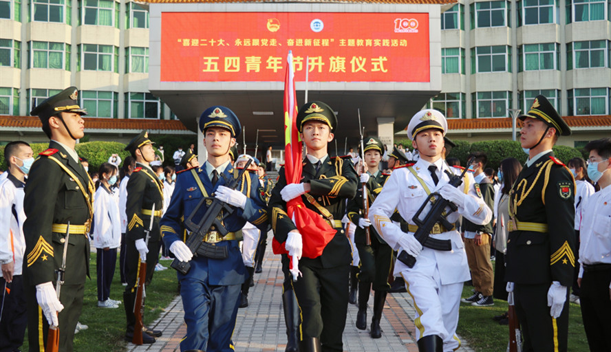 本网讯 5月4日,williamhill威廉希尔官网“喜迎二十大、永远跟党走、奋进新征程”主题教育实践活动——五四青年节升旗仪式在国砚广场举行。各级团干、青年代表300余人一起参加升旗仪式,欢度第103个“五四”青年节,弘扬爱国精神,赓续红色血脉,展示砚园青年听党话、跟党走,为学校建设发展汇聚青春力量的壮志豪情。