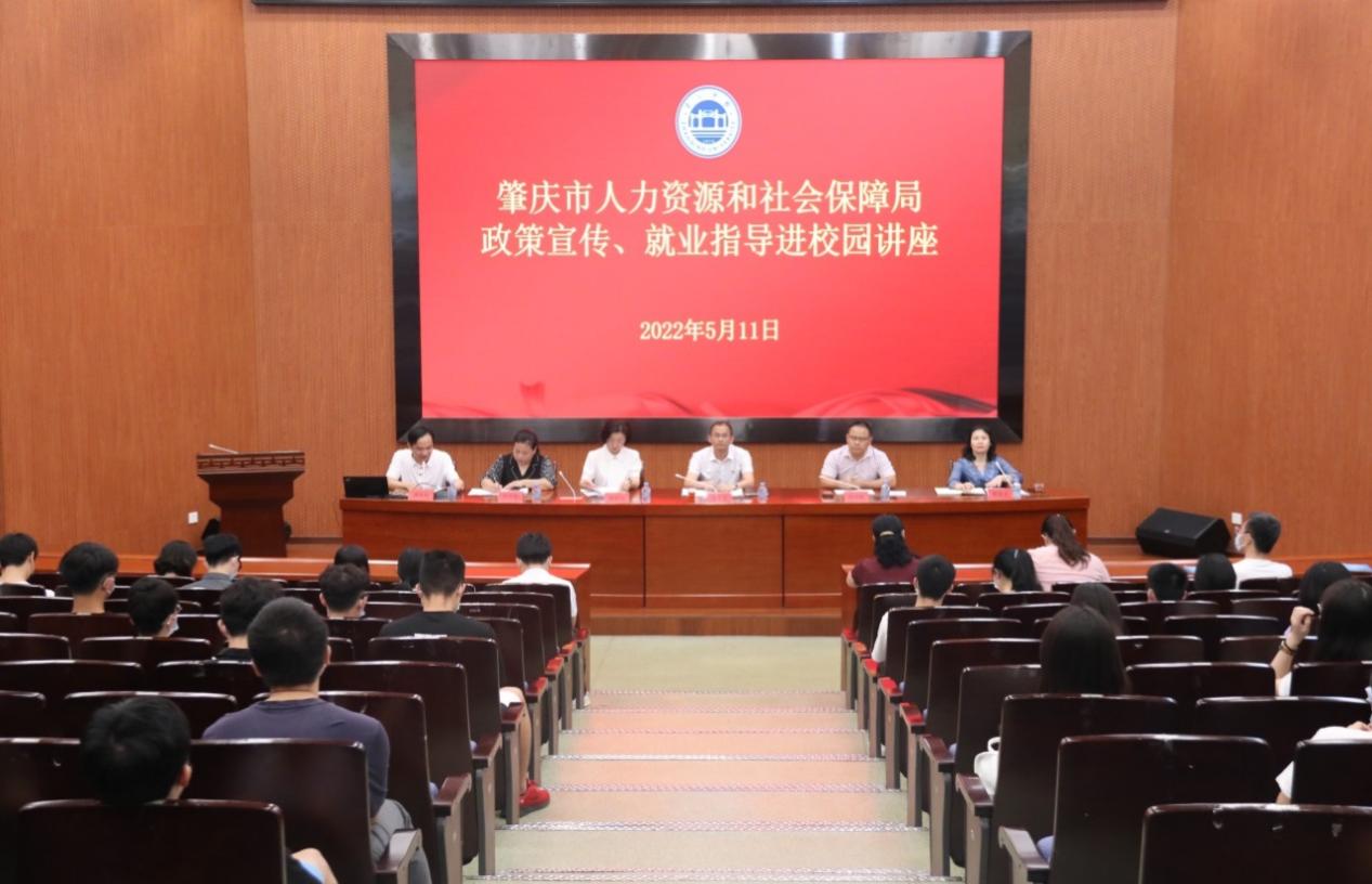 本网讯 5月11日,市人社局政策宣传、就业指导进校园讲座开讲,肇庆市人力资源与社会保障局党组成员、副局长谭景全,以及该局就业科、人才开发科、人才服务中心、用工专班等科室负责人现场为毕业生作就业创业指导和留肇就业政策解读。