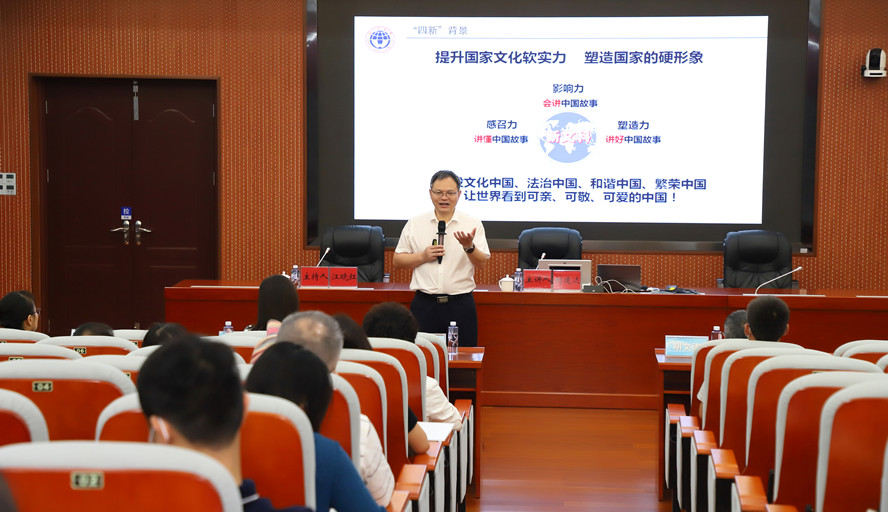 讲座对“四新”背景作了解读,指出全面推进“四新”建设是提升国家硬实力、提升生态成长力、提升全民健康力、提升文化软实力,建设文化中国、法治中国、和谐中国、繁荣中国,让世界看到可亲、可敬、可爱的中国的重要举措。关于如何在“四新”背景下深化外语教学改革,实现外语教学的新格局、新质量和新作为,讲座强调要加强外语专业内涵建设,以及外语与其他学科的交叉融合,培养一精多会、一专多能的外语人才,形成新理念、新体系、新模式和新质量。讲座介绍了外语教学BIPA建设模型,表示要建立新大学英语课程群,积极开展教育评价改革,并对外语教学过程中的形成性评价进行深入、详细地讲解,包括形成性评价的主要因素、促学评价模型、电子档案袋评价等。
