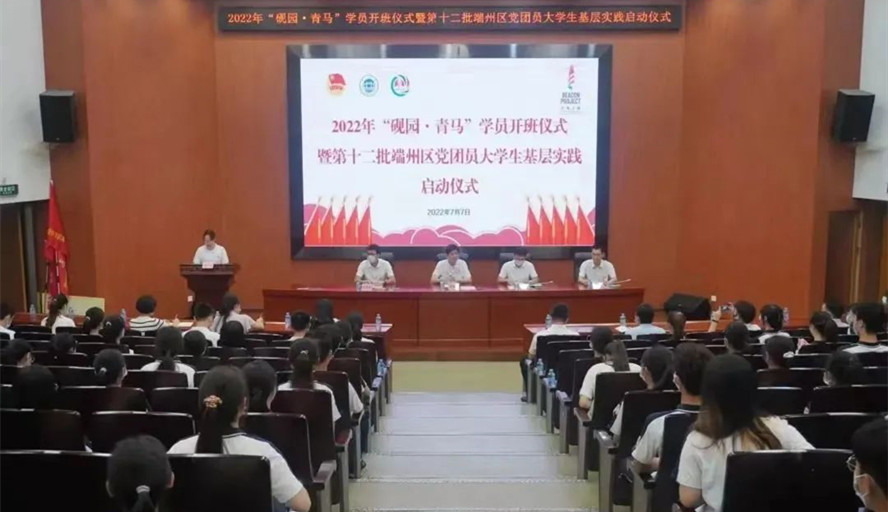 威廉希尔官网举行2022年“砚园·青马”学员开班仪式暨第十二批端州区党团员大学生基层实践启动仪式。仪式上,校团委副书记(主持全面工作)马舒洁回顾了2021年青马班的成果。校党委委员、组织部部长欧洪湛颁发“优秀学员”荣誉证书,团端州区委书记王烁颁发2022年青马班学员的录取通知书。欧洪湛在会上讲话,肯定威廉希尔官网“青马工程”学员培养的工作成效,鼓励新学员要坚定理想信念,加强理论素养,做一名马克思主义的忠实拥护者;勤奋刻苦学习,坚持知行合一,做一名马克思主义的坚定实践者;争当先锋模范,甘于奉献社会,做一名马克思主义的积极传播者,用青春激情和不懈的努力唱响为端州区组织建设志愿服务倾情奉献的主旋律。