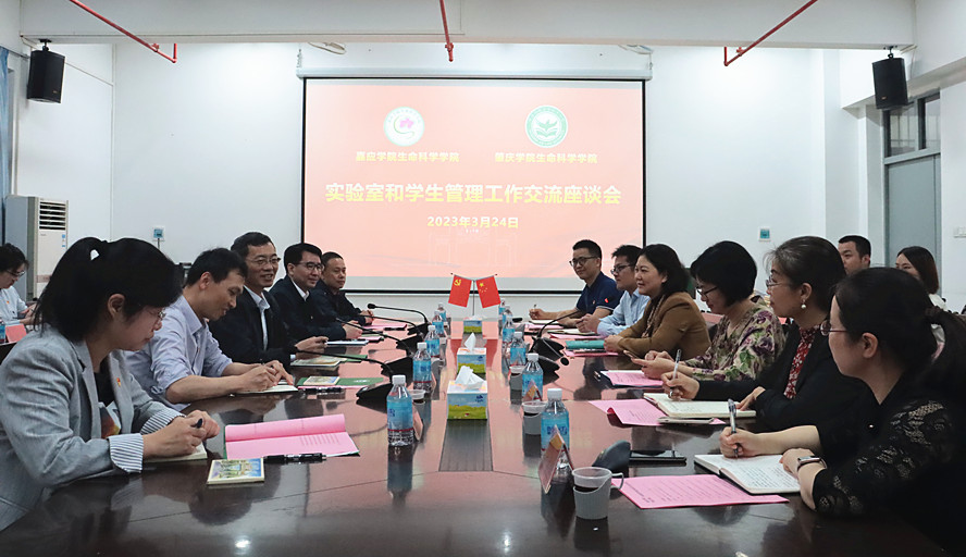 本网讯 3月24日,嘉应学院生命科学学院党委书记苏贤聚带领实验中心及学工团队一行来到威廉希尔官网,与生命科学学院开展交流活动。学院党委书记胡隼、副院长邵玲(主持行政全面工作)出席交流。